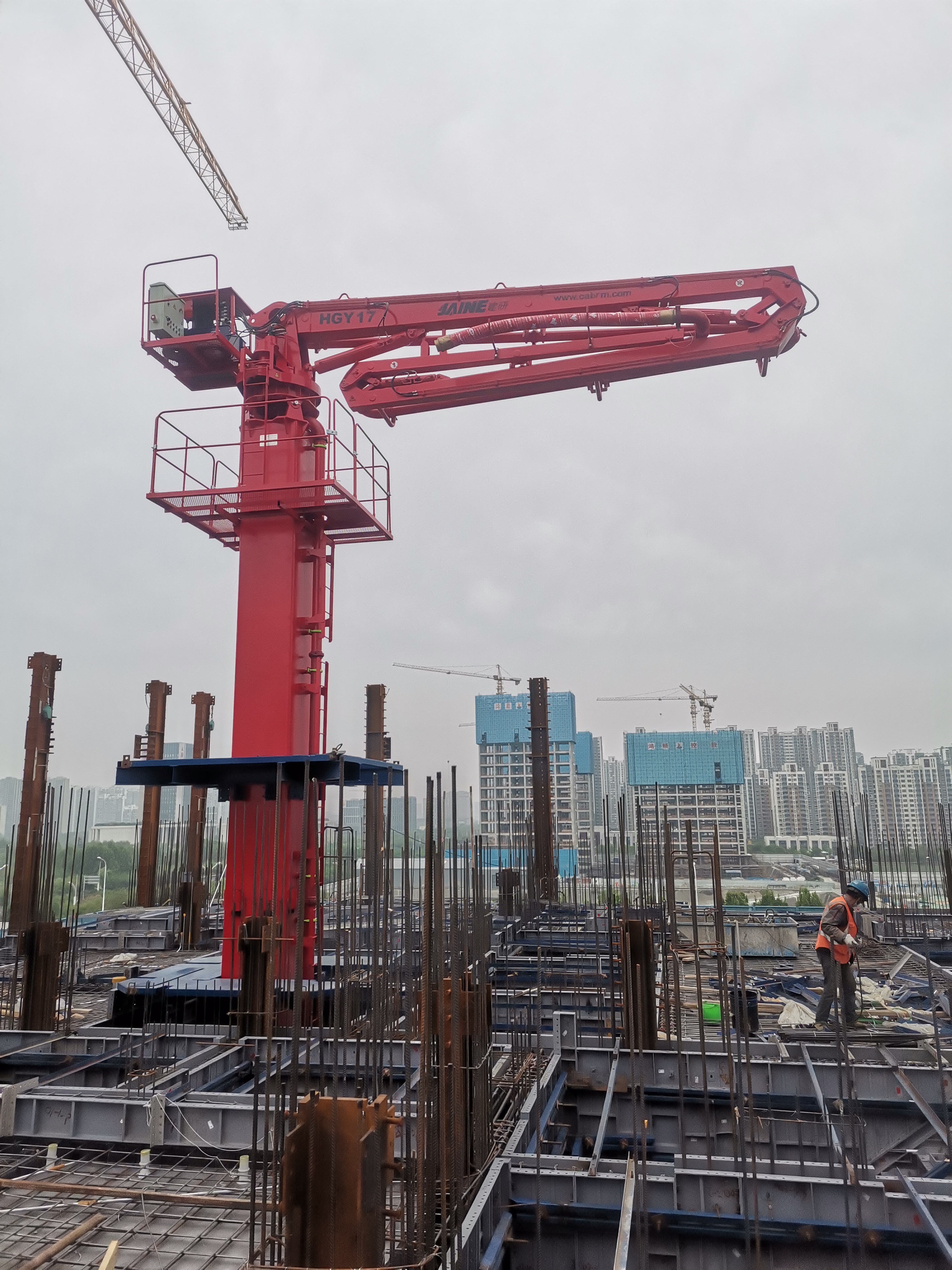 廊坊凱博建設機械科技有限公司生產的?JAINE建研?內爬式布料機(HGY17)經過用戶多方面的綜合比較和激烈競爭后,成功進駐濟寧京杭大數(shù)據(jù)產業(yè)園基礎設施項目。